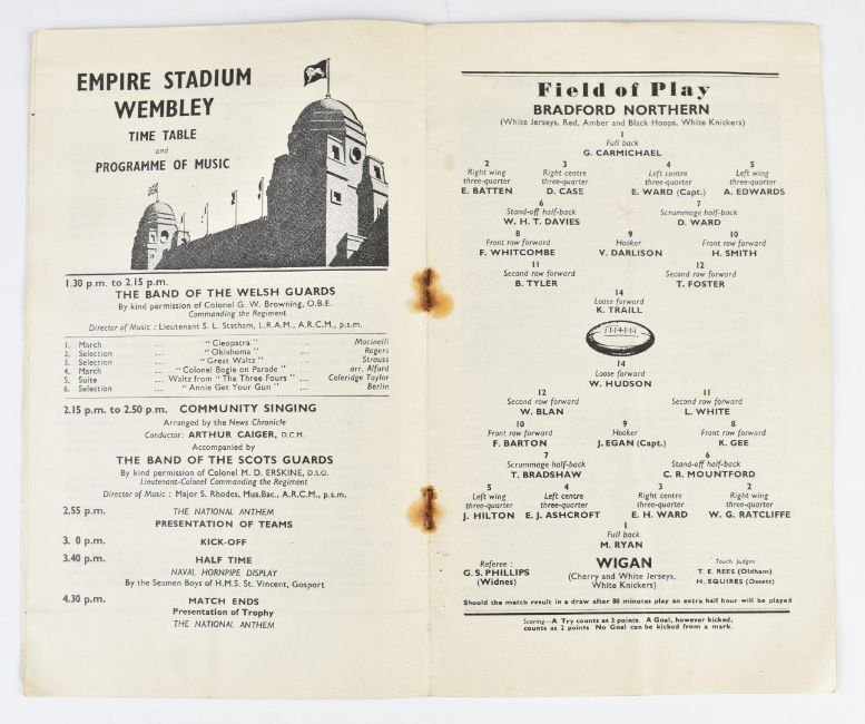 Rugby League Challenge Cup Final Tie 1948 programme for Bradford Northern v Wigan at Wembley Empire Stadium