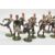 Thirteen Britains Famous Football Series lead model footballers comprising eleven players with black and white striped tops with black shorts, a player with red detailing to upper body and a goalkeeper with hinged arms, green top and white shorts, all standing on oval bases.