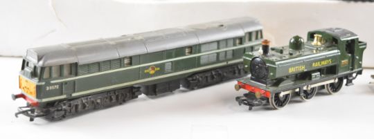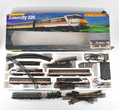 Hornby 00 gauge R696 Intercity 125 model railway set together with a Tri-Ang R357 diesel locomotive and a Hornby pannier tank