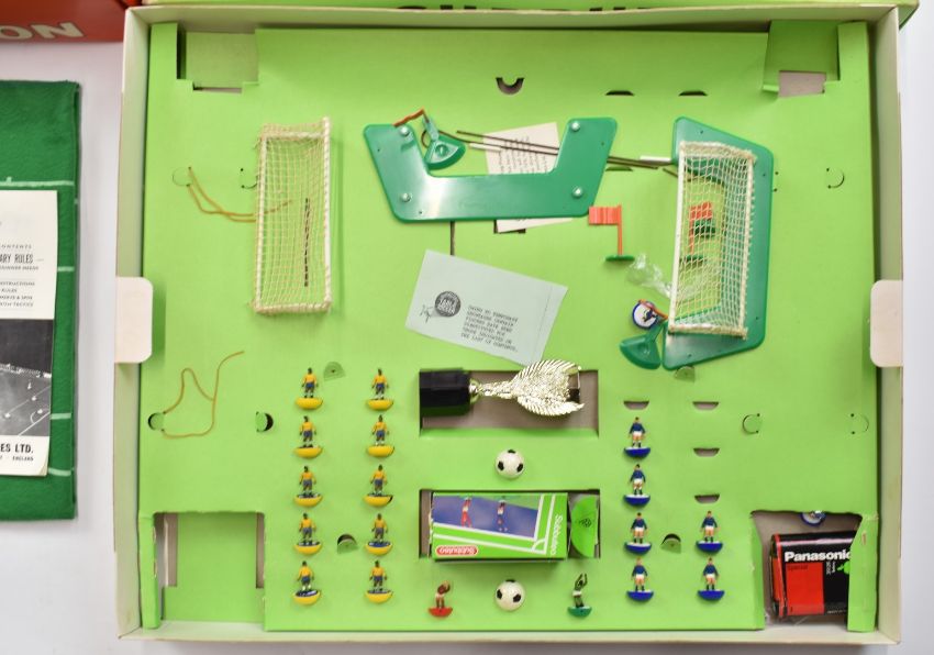 Subbuteo Table Soccer World Cup Edition in original box with playing cloth, goals, floodlights, trophy, intructions etc.
