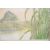 Una or Lina watercolour / gouache mythical landscape, with bird nesting in reeds which form pipes, smoke or a cloud forming the ghostly face of Pan to the left above the lake, signed and dated 80 lower right, 30 x 45cm