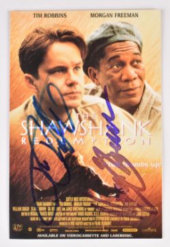 Shawshank Redemption autographed 14 x 9cm postcard signed by Tim Robbins and Morgan Freeman.