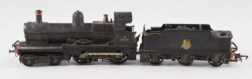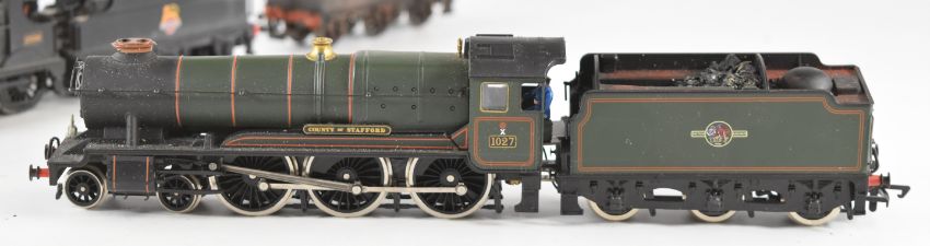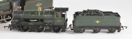 Four 00 gauge GWR model railway steam tender locomotives comprising Mainline Collet 0-6-0, Mainline Dean 0-6-0, kit built outside frame 4-4-0 and a County, together with a spare tender