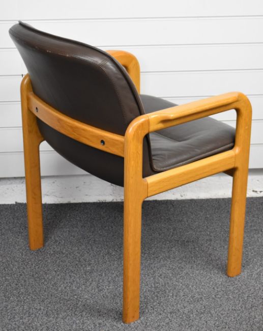 Five Kusch+Co. light oak, leather upholstered armchairs, please note the photograph shows an example chair
