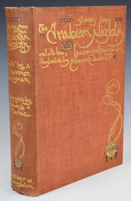 [Dulac] Stories from The Arabian Nights Retold by Laurence Housman with drawings by Edmund Dulac, published Hodder & Stoughton 1907 with 50 mounted colour plates each with lettered guards, bound in publisher's gilt decorated cloth