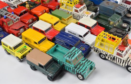 Twenty-seven loose diecast model Land Rovers comprising Corgi, Dinky, Britains and Matchbox.