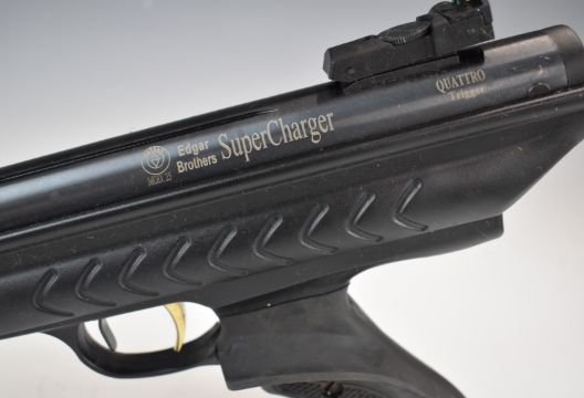 Hatsan Edgar Brothers Model 25 Super Charger .22 target air pistol with shaped and chequered grips, Quattro Trigger and adjustable sights, serial number 0315 29554.