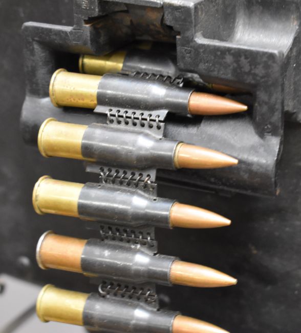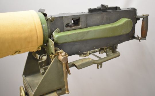 Russian Maxim .303 heavy machine gun with twin spade handles, adjustable sights, top plate dated 1944 and bronze adjustable ship's deck mount stamped 'PORT ABT SIR TRIST', serial number CA676.