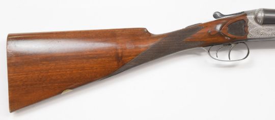 Charles Osbourne 12 bore side by side ejector shotgun with named and engraved locks, engraved underside, trigger guard, top plate, fences and thumb lever, chequered grip and forend, carved teardrop to the wrist, vacant cartouche to the underside of the stock, double trigger and 30 inch barrels choked ¼ and full, overall length 119cm, length of pull 38cm, serial number 68883. PLEASE NOTE THAT A VALID RELEVANT FIREARMS/SHOTGUN CERTIFICATE IS REQUIRED TO HANDLE/PURCHASE THIS ITEM.