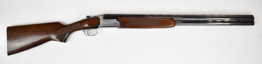 Midland 12 bore over and under ejector shotgun with engraved lock, underside, trigger guard, top plate and thumb lever, chequered semi-pistol grip and forend, single trigger, vented top and central ribs and 27.75 inch multi-choke barrels, overall length 114cm, length of pull 36cm, serial number 88876. PLEASE NOTE THAT A VALID RELEVANT FIREARMS/SHOTGUN CERTIFICATE IS REQUIRED TO HANDLE/PURCHASE THIS ITEM.