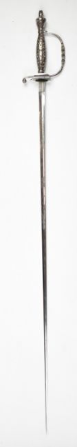 British 19thC cut steel court sword with 80cm blade and scabbard. PLEASE NOTE ALL BLADED ITEMS ARE SUBJECT TO OVER 18 CHECK ON COLLECTION OR DELIVERY