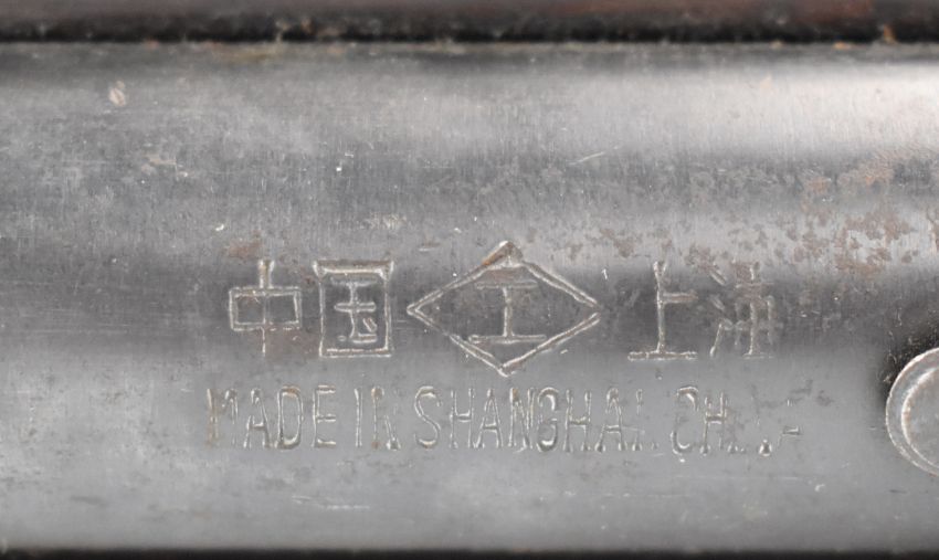 Chinese Haenel style .177 air pistol with chequered wooden grips and top plate marked 'Made in Shanghai China', NVSN.