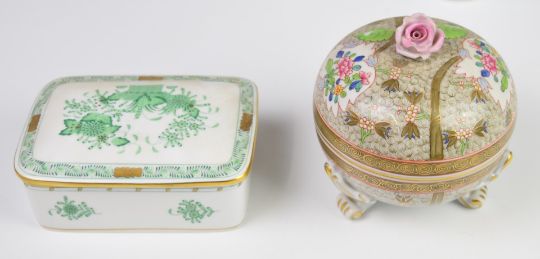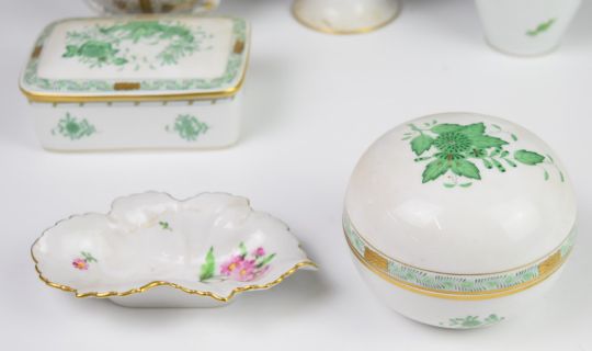 A collection of Herend porcelain including flowers, vases, covered pots etc, patterns include Chinese Bouquet in puce and green, tallest 22cm