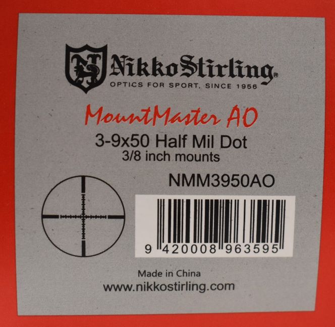 Nikko Stirling Mount Master AO 3-9x50 half mil dot air rifle or similar scope, in original box
