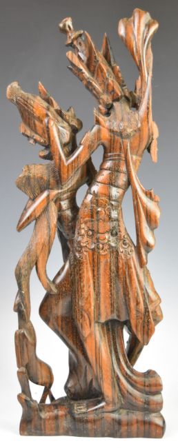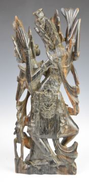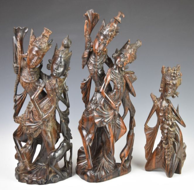 Three Indonesian or similar carved wooden figures, height of tallest 50cm