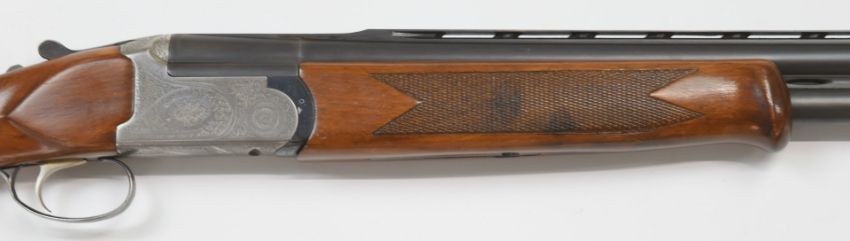 Bettinsoli Top 12 bore over and under ejector shotgun with engraved locks, underside, trigger guard and thumb lever, chequered semi-pistol grip and forend, vented top and central ribs, gilt single trigger and 29 inch barrels choked ¾ and ½, overall length 118cm, length of pull 36cm, serial number 72744. PLEASE NOTE THAT A VALID RELEVANT FIREARMS/SHOTGUN CERTIFICATE IS REQUIRED TO HANDLE/PURCHASE THIS ITEM.