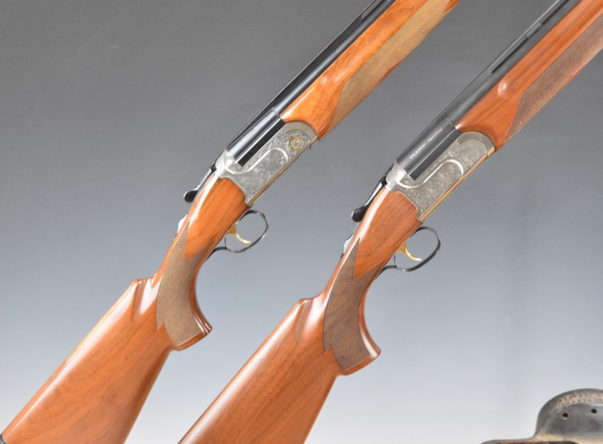 A composed pair of Classic Doubles Sporting 12 bore over and under ejector shotguns each with engraved locks, chequered semi-pistol grip, vented top rib, single trigger and 30 inch multi-choke barrels, serial numbers TN2981 and TN2198. PLEASE NOTE THAT A VALID RELEVANT FIREARMS/SHOTGUN CERTIFICATE IS REQUIRED TO HANDLE/PURCHASE THIS ITEM.