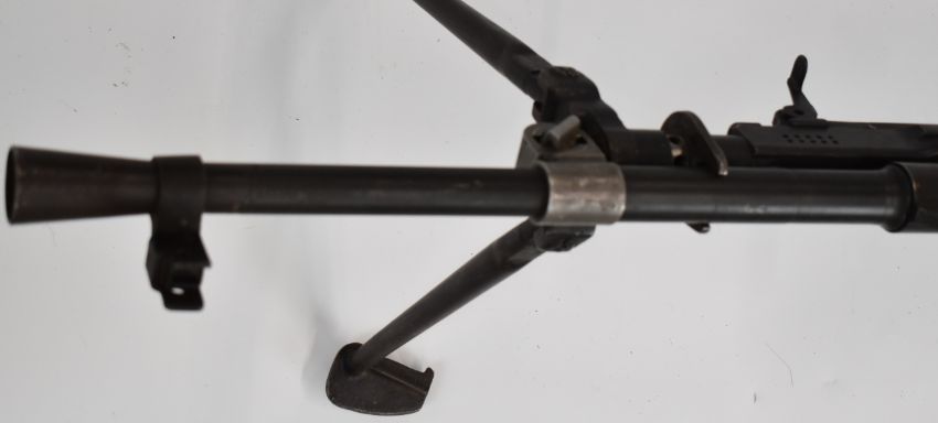 Deactivated British Bren Mk.II .303 light machine gun stamped 'A.S.R.' to the left side of the frame and 'Inglis 1943' to the right, with wooden pistol grip, barrel handle and stock, curved magazine, bi-pod and adjustable ladder sights, serial number 12T333, in fitted wooden chest with three spare magazines and accessories, with deactivation certificate dated 13/02/23.