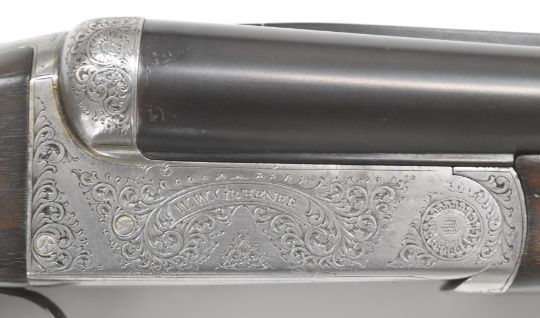 WW Greener Blue Rock 12 bore side by side live pigeon shotgun with named and engraved locks, engraved underside, trigger guard, top plate, fences and thumb lever, chequered semi-pistol grip and forend, vacant cartouche to the underside of the stock, double trigger and named 28 inch barrels choked improved cylinder and ¼, overall length 112.5cm, length of pull 37cm, serial number 77218. PLEASE NOTE THAT A VALID RELEVANT FIREARMS/SHOTGUN CERTIFICATE IS REQUIRED TO HANDLE/PURCHASE THIS ITEM.