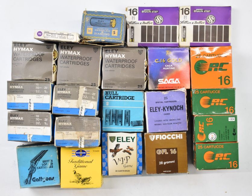 Approximately five-hundred 16 bore shotgun cartridges including Eley Hymax, Gallyons, CRC, Hull Three Crowns, Eley VIP, Eley-Kynoch, Sellier & Bellot Super Black Star etc. PLEASE NOTE THAT A VALID RELEVANT FIREARMS/SHOTGUN CERTIFICATE IS REQUIRED TO HANDLE/PURCHASE THIS ITEM.We are not able to post this lot.