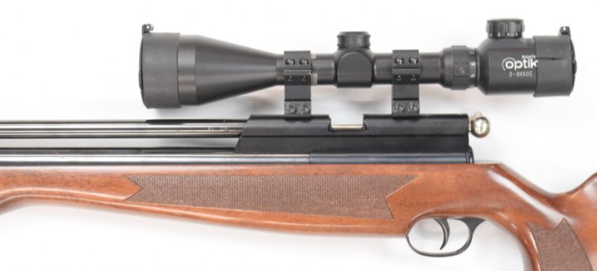 BSA Scorpion .22 PCP air rifle with chequered semi-pistol grip and forend, raised cheek piece, adjustable trigger, sound moderator and Richter Optik 3-9x50 E scope, serial number 88143.