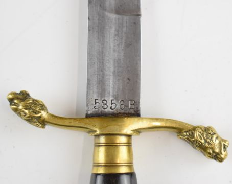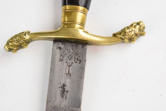 WW1 Imperial German dress dagger with brass eagle head pommel, lion head to end of S shaped cross guard, 25cm blade stamped 5356 B and F Herder, maker's mark to ricasso and brass mounted leather scabbard inscribed S.M.S Rheinland, together with a contemporary sailor's hat ink stamped to interior Meister 1773 over 17 with S.M.S Rheinland to cap tally and medal badge. PLEASE NOTE ALL BLADED ITEMS ARE SUBJECT TO OVER 18 CHECK ON COLLECTION OR DELIVERY