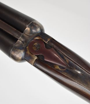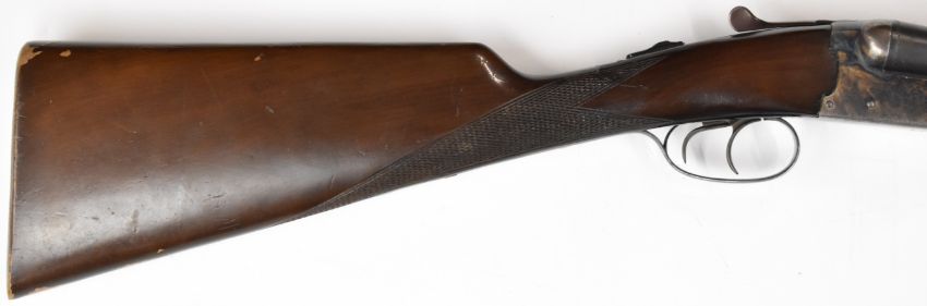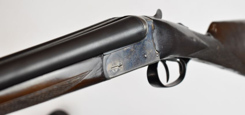 Harrier Gunmark 20 bore side by side shotgun with chequered grip and forend, double trigger and named 26 inch barrels, overall length 110cm, length of pull 36cm, serial number 70844. PLEASE NOTE THAT A VALID RELEVANT FIREARMS/SHOTGUN CERTIFICATE IS REQUIRED TO HANDLE/PURCHASE THIS ITEM.