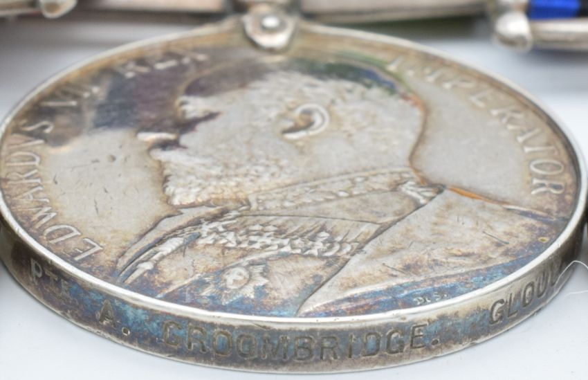 British Army Boer War and WW1 medals comprising Queen's South Africa 1899 and King's South Africa 1902 with clasps for Cape Colony, Orange Free State and South Africa 1901 and 1902, named to 5817 Pte A Groombridge together with his WW1 War Medal and Victory Medal, all Gloucestershire Regiment (33253 to WW1 medals) and his Imperial Service Medal