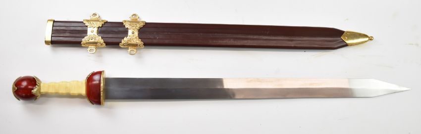 Three replica dagger / swords including a Hibben example, longest blade 72cm. PLEASE NOTE ALL BLADED ITEMS ARE SUBJECT TO OVER 18 CHECK ON COLLECTION OR DELIVERY