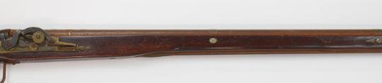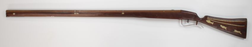 A decorative matchlock style musket with metal fish and other animals inlaid to the stock and 39 inch barrel, overall length 140cm.