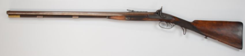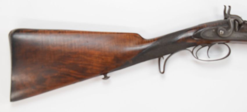 John Blissett .600 side by side double barrelled percussion hammer action muzzle loading rifle with named and engraved locks, engraved hammers, spurred trigger guard and top plate, chequered grip and forend, brass tipped wooden ram-rod, sling mounts, vacant cartouche to the underside of the stock, adjustable pop-up ladder sights and 29 inch Damascus barrels, overall length 115cm, serial number 3254.