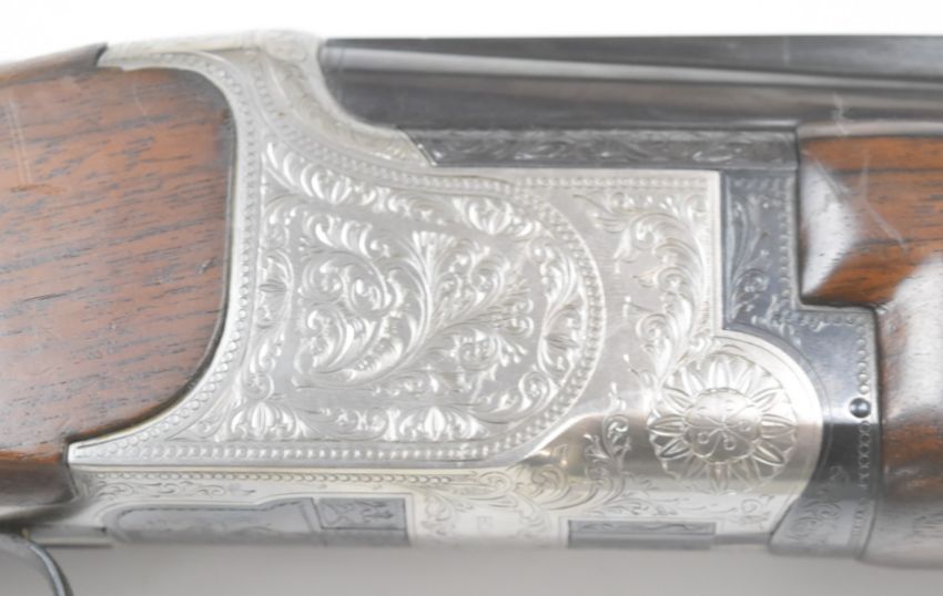 Miroku 12 bore over and under ejector shotgun with engraved locks, underside, trigger guard, top plate and thumb lever, chequered semi-pistol grip and forend, single trigger, vented top rib and 26 inch unchoked barrels, overall length 110cm, length of pull 37cm, serial number 698041. PLEASE NOTE THAT A VALID RELEVANT FIREARMS/SHOTGUN CERTIFICATE IS REQUIRED TO HANDLE/PURCHASE THIS ITEM.