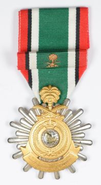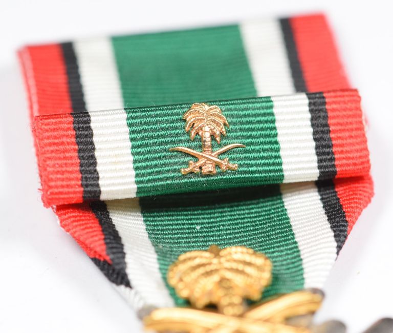 Gulf Medal with clasp for 16 Jan to 28 Feb 1991, naming rubbed / erased but Cold'm Guards remains, Saudi Arabia Kingdom medal for the Liberation of Kuwait 1991 with ribbon bar and box, Kuwait Liberation Medal and a UN Medal with certificate
