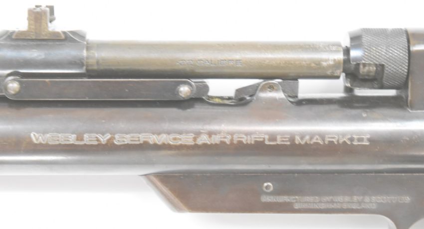 Webley Service Mark II .22 air rifle with interchangeable barrel, adjustable pop-up peep sights, adjustable alignment sights and chequered grip, serial number 11465.