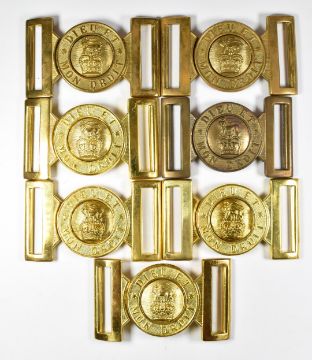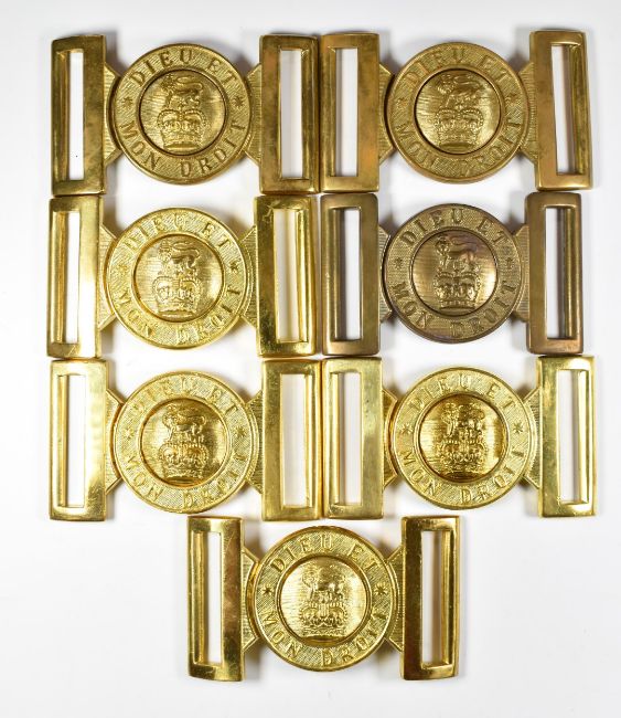 Seven Dieu et Mon Droit British Army brass belt buckles