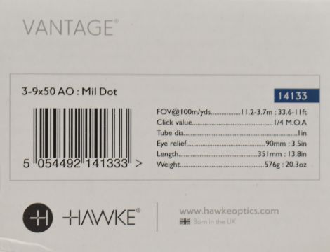 Hawke Vantage 3-9x50 AO mil dot air rifle or similar scope, in original box