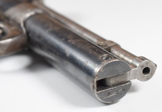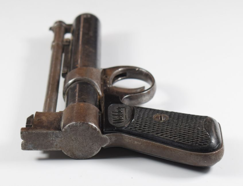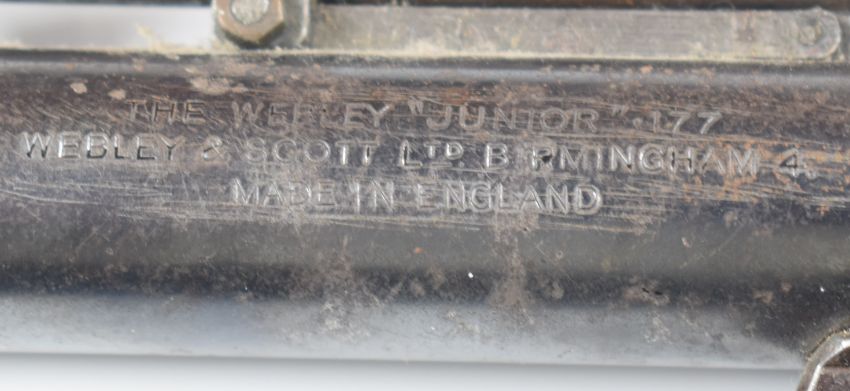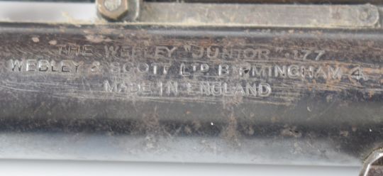 Webley Junior .177 air pistol with named and chequered grips and adjustable sights, serial number 728.