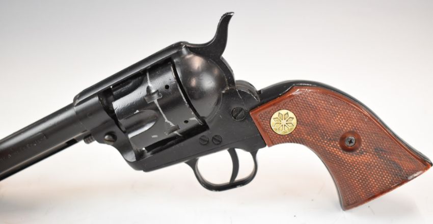 Phoenix Arms six-shot single-action blank or cap firing revolver with chequered faux wood grips.