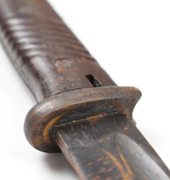 German 84/98 pattern bayonet with grooved grips, flashguard and 25cm fullered blade, with scabbard. PLEASE NOTE ALL BLADED ITEMS ARE SUBJECT TO OVER 18 CHECK ON COLLECTION OR DELIVERY