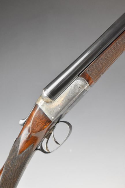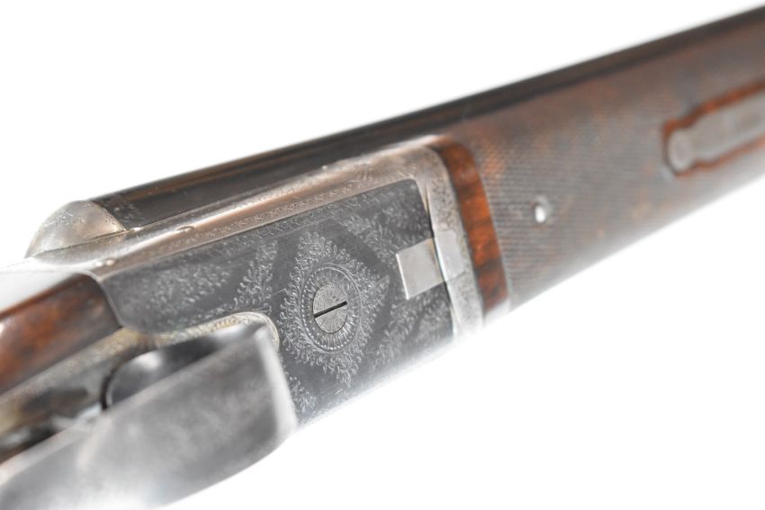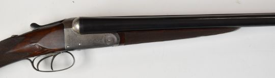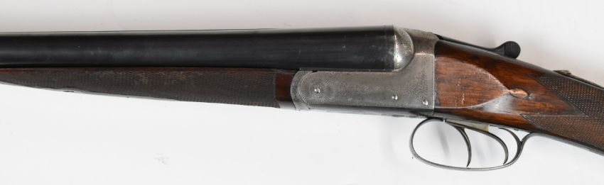 J & W Tolley 12 bore side by side shotgun with named and engraved locks, engraved underside, trigger guard, top plate, thumb lever and fences, chequered grip and forend, carved teardrop to the stock, double trigger and 28 inch barrels choked ¼ and improved cylinder, overall length 112.5cm, length of pull 36.5cm, serial number 6675, in fitted wooden case. PLEASE NOTE THAT A VALID RELEVANT FIREARMS/SHOTGUN CERTIFICATE IS REQUIRED TO HANDLE/PURCHASE THIS ITEM.