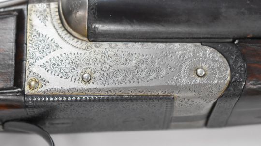 Williams & Powell of Liverpool 12 gauge side by side shotgun with engraved locks, underside, trigger guard, top plate, fences and thumb lever, chequered grip and forend, vacant cartouche to the underside of the stock, double trigger and named 28 inch barrels choked improved cylinder and ½, overall length 112cm, length of pull 36cm, serial number 8679. PLEASE NOTE THAT A VALID RELEVANT FIREARMS/SHOTGUN CERTIFICATE IS REQUIRED TO HANDLE/PURCHASE THIS ITEM.