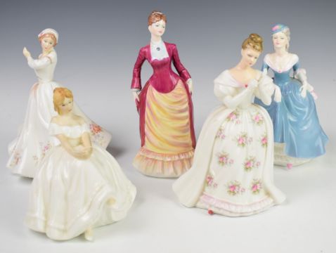 Six Royal Doulton / Coalport figurines including Rosemary, Summer Rose and Heather, tallest 25cm