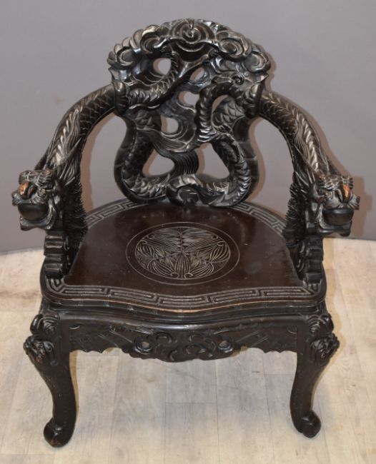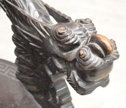 Chinese 19th / 20thC carved wood chair with dragon armrests, width 67cm