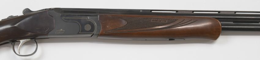 Khan Arms Revo K226 .410 over and under shotgun with named and engraved lock, chequered semi-pistol grip and forend, single trigger, vented top and central ribs and 28 inch barrels, overall length 115cm, length of pull 37cm, serial number 13-361289, in original fitted case. PLEASE NOTE THAT A VALID RELEVANT FIREARMS/SHOTGUN CERTIFICATE IS REQUIRED TO HANDLE/PURCHASE THIS ITEM.