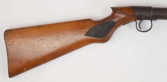BSA Improved Model D .177 under-lever air rifle with named and chequered semi-pistol grip and adjustable trigger and sights, serial number S33885.