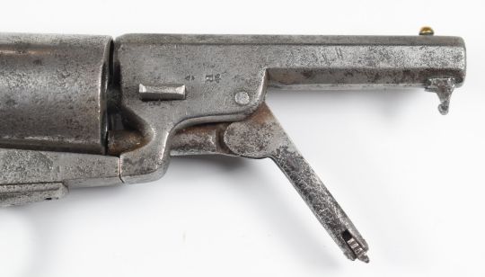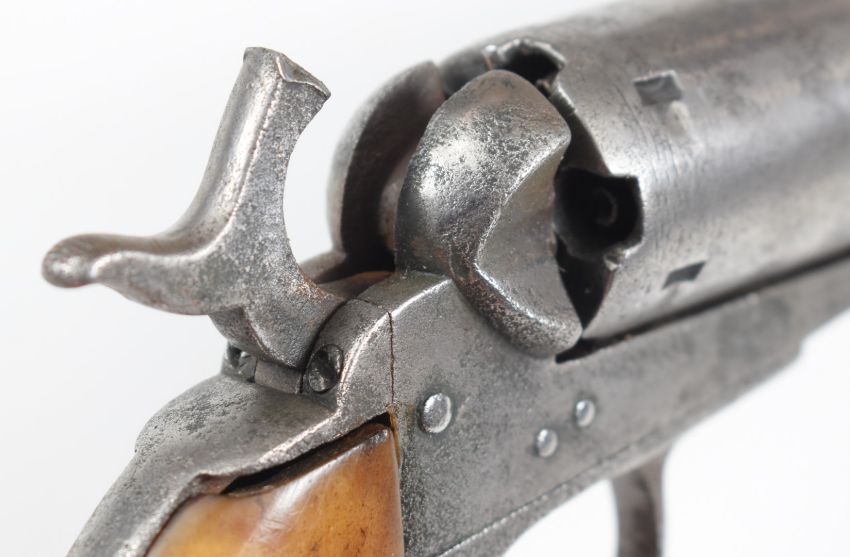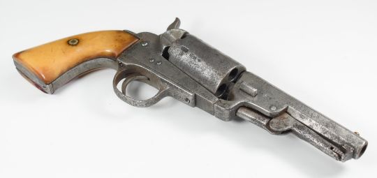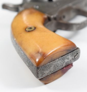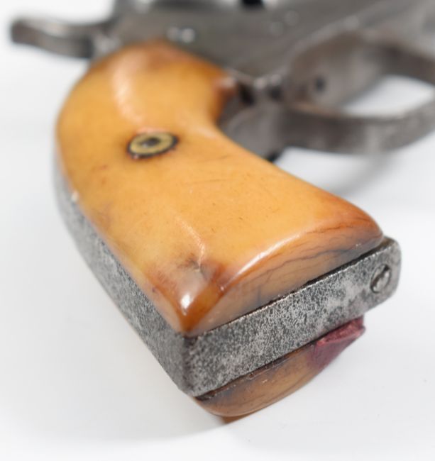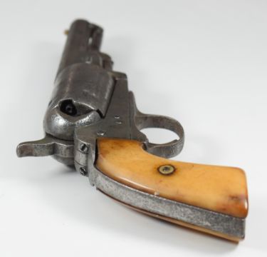 Colt style 5-shot single action revolver with bone grips, engraved cylinder and 3.75 inch engraved and indistinctly named octagonal barrel, overall length 25.5cm.