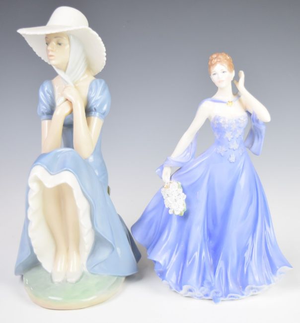 Fourteen Lladro / Nao, Royal Doulton and Coalport figurines, tallest 29cm