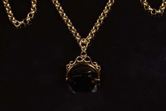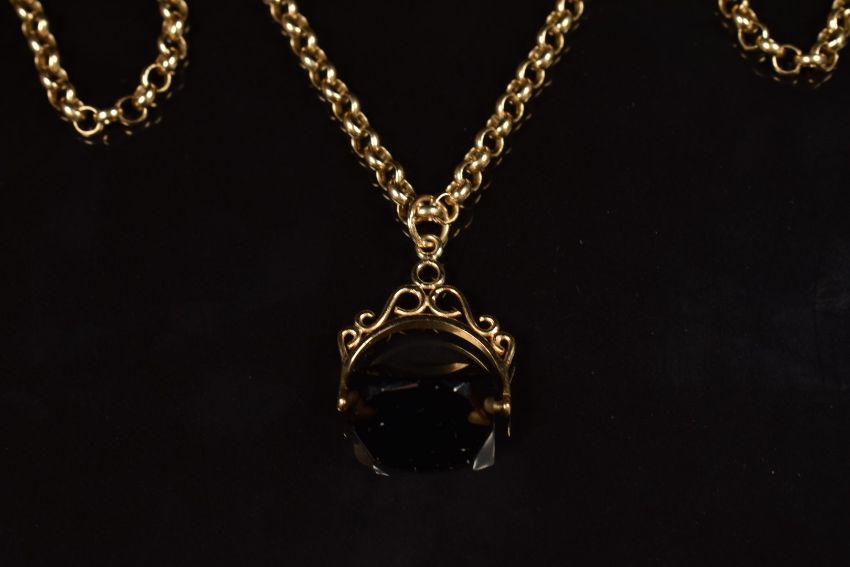 A 9ct gold necklace with 9ct gold swivel fob set with quartz, 8.3g
