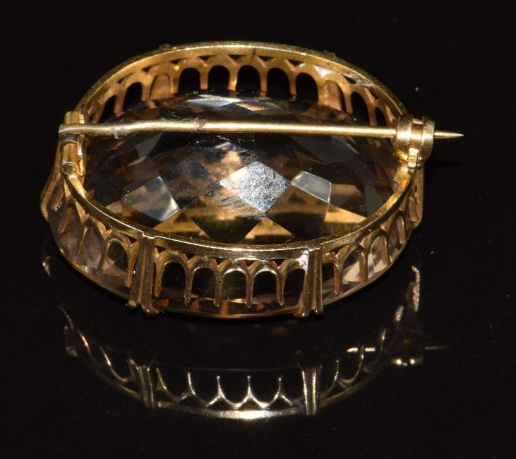 A 9ct gold brooch set with a large oval cut citrine, 17.1g