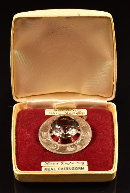 A 9ct gold Cairngorm smoky quartz brooch